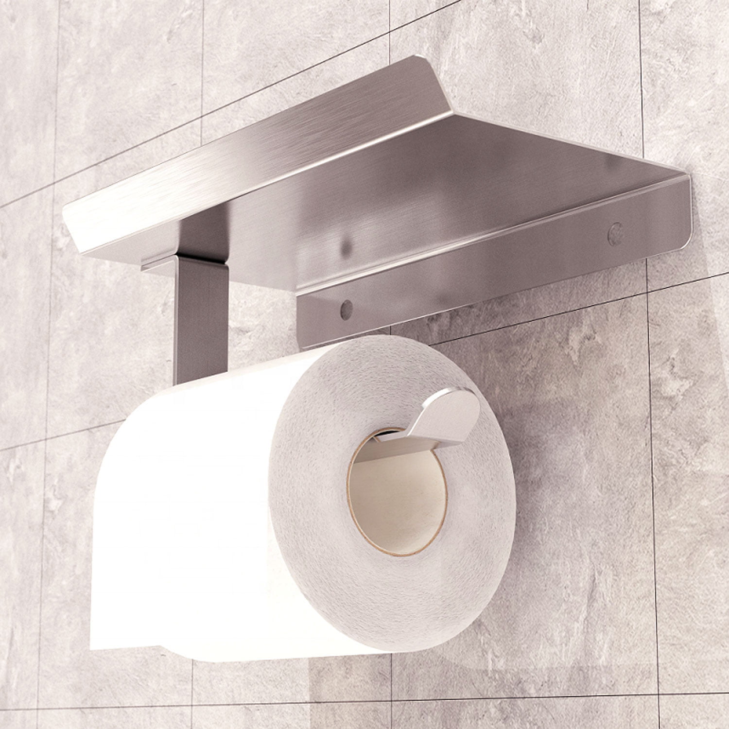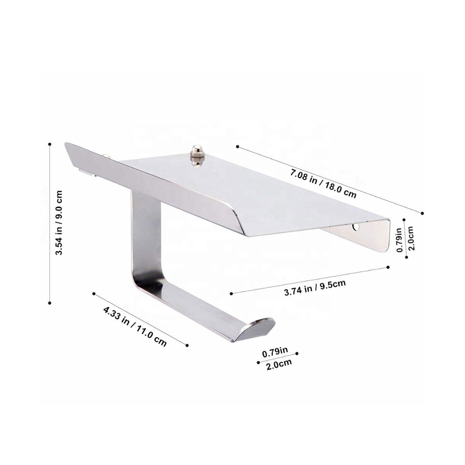 This wall mount paper holder can be fixed to the wall by glue or screws. This product is made of stainless steel.It is very durable and not easy to dust.