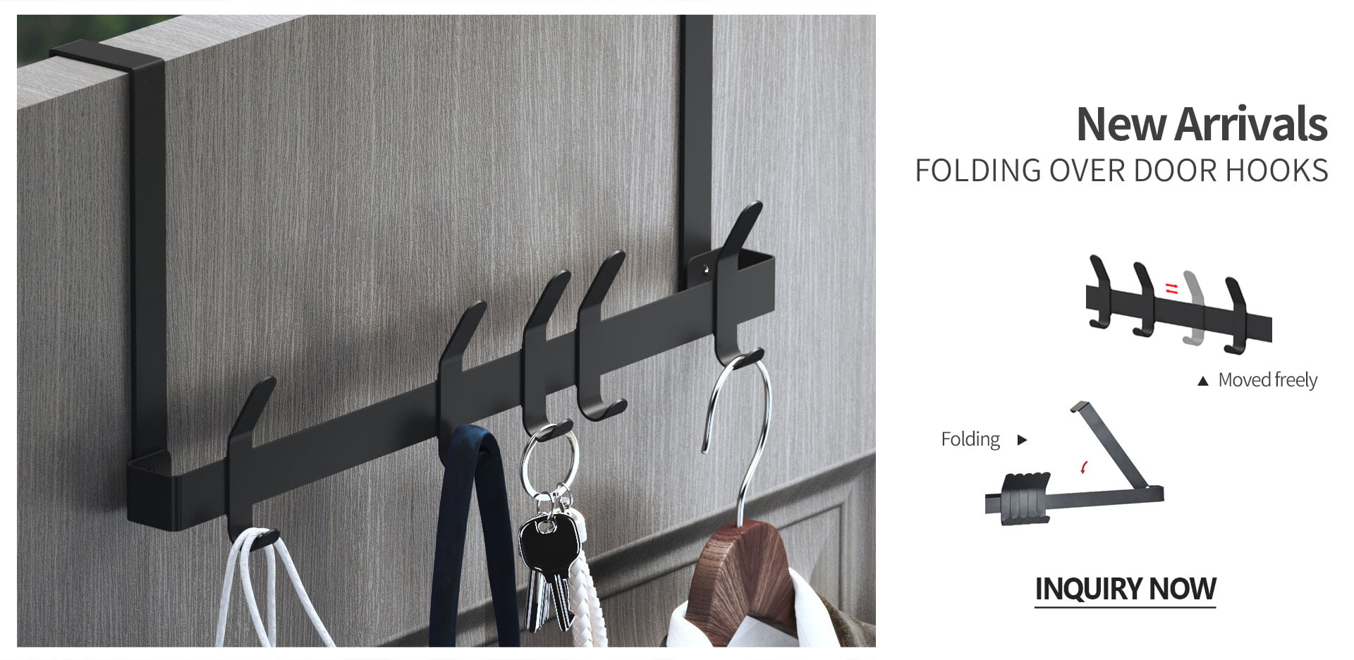 The over door hook has a foldable hanging, which can be a great way to help you save space for transportation, and there is no need for tedious installation. Your customers can use it as soon as they receive the goods. Besides, the hooks of this door hook are all time removable and free to install, you can just adjust the spacing between the hooks to hang different things.