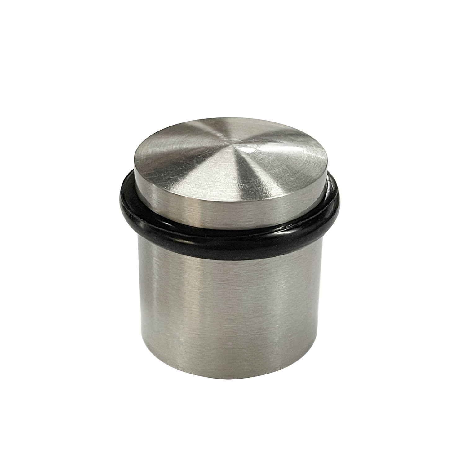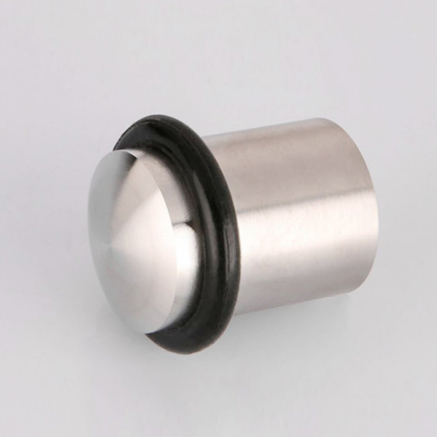 This door stopper manufactured from heavy-use brushed stainless steel and black Silicone rings, these highly functional Door Stoppers will safely hold glass, metal or wooden doors on any floor surface