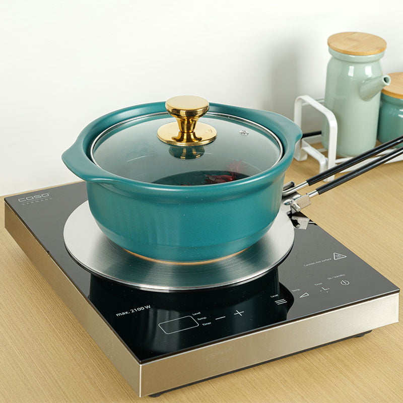 This induction plate adapter allows you to use all your regular pans on an induction surface.You can use this induction plate adapter for all of your kitchen pots (cast iron pot, enamel pot, coffee pot, glass pot, iron pot, stainless steel pot, aluminum pot and ceramic pot and so on)