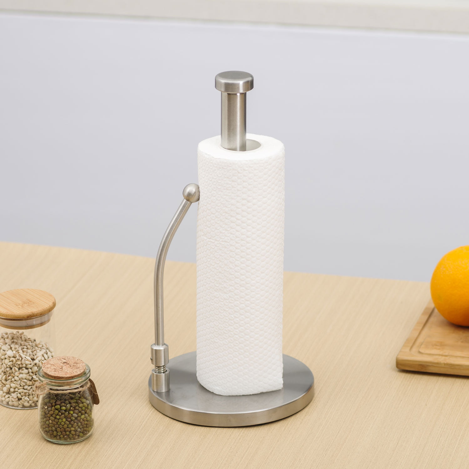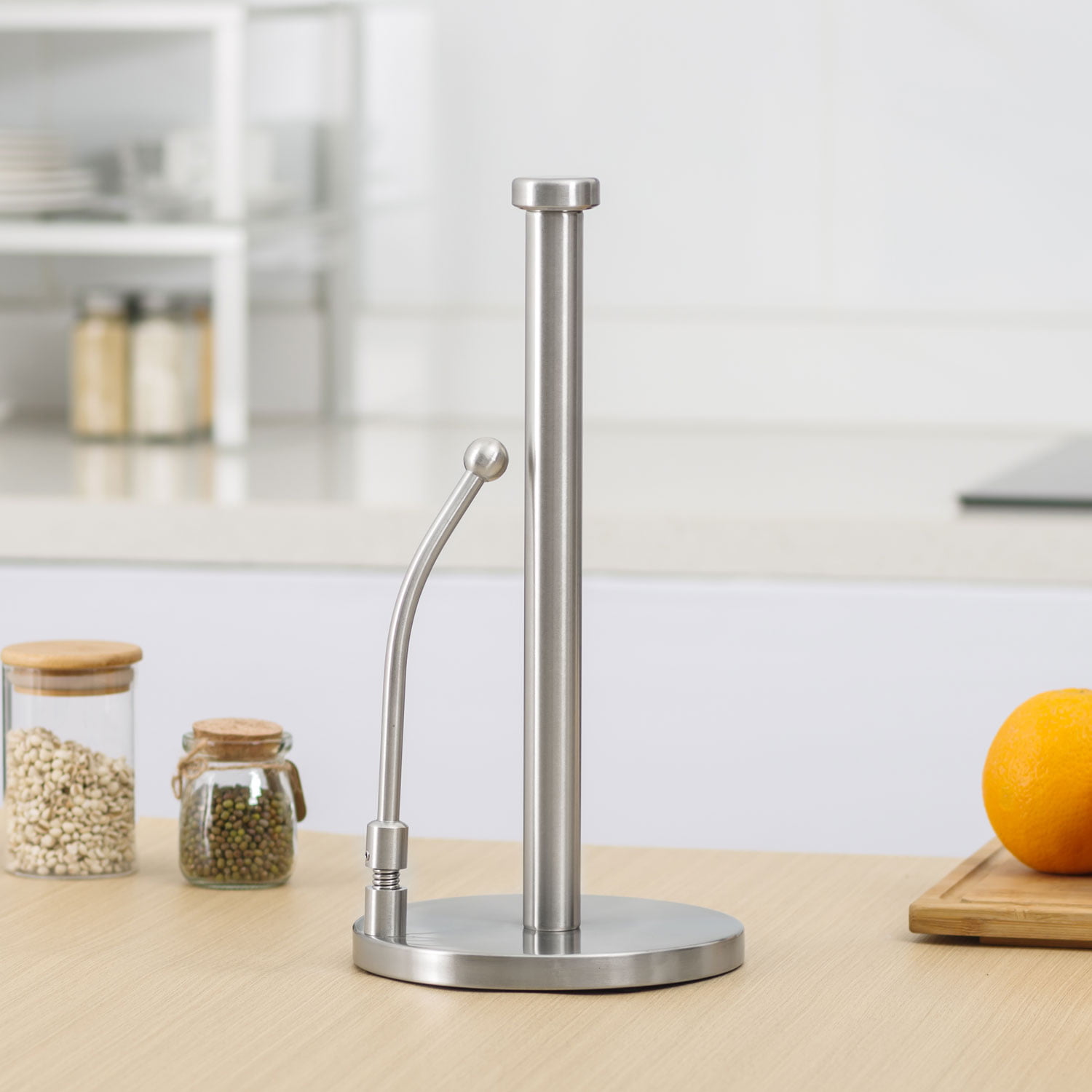 This kitchen paper towel roll holder is made of stainless steel. It is very durable and not easy to be dust.By using this product, you can tear kitchen paper very easily.