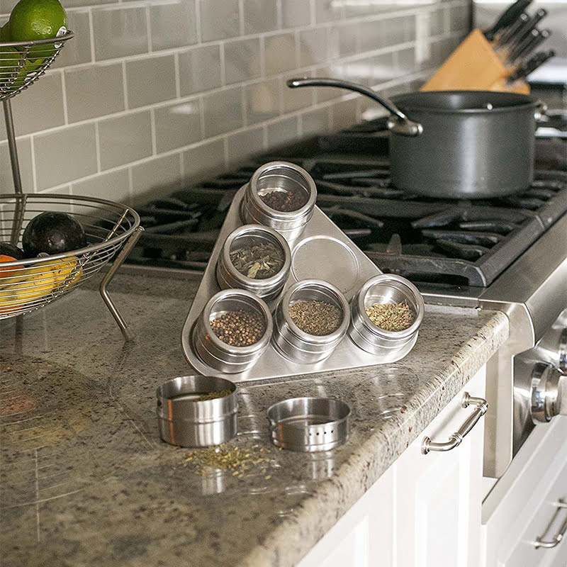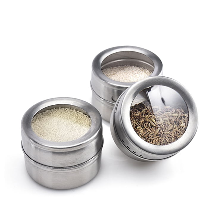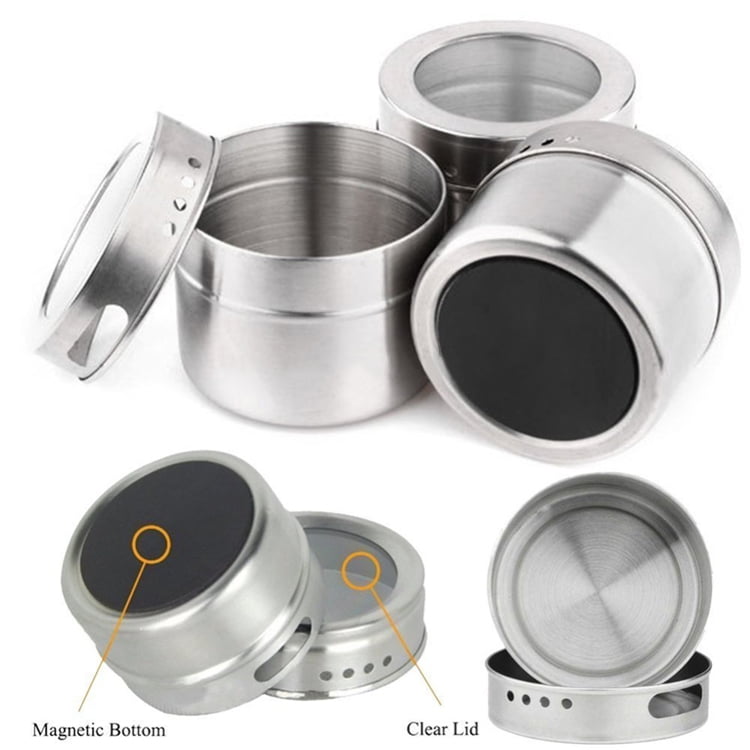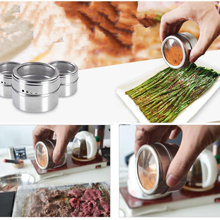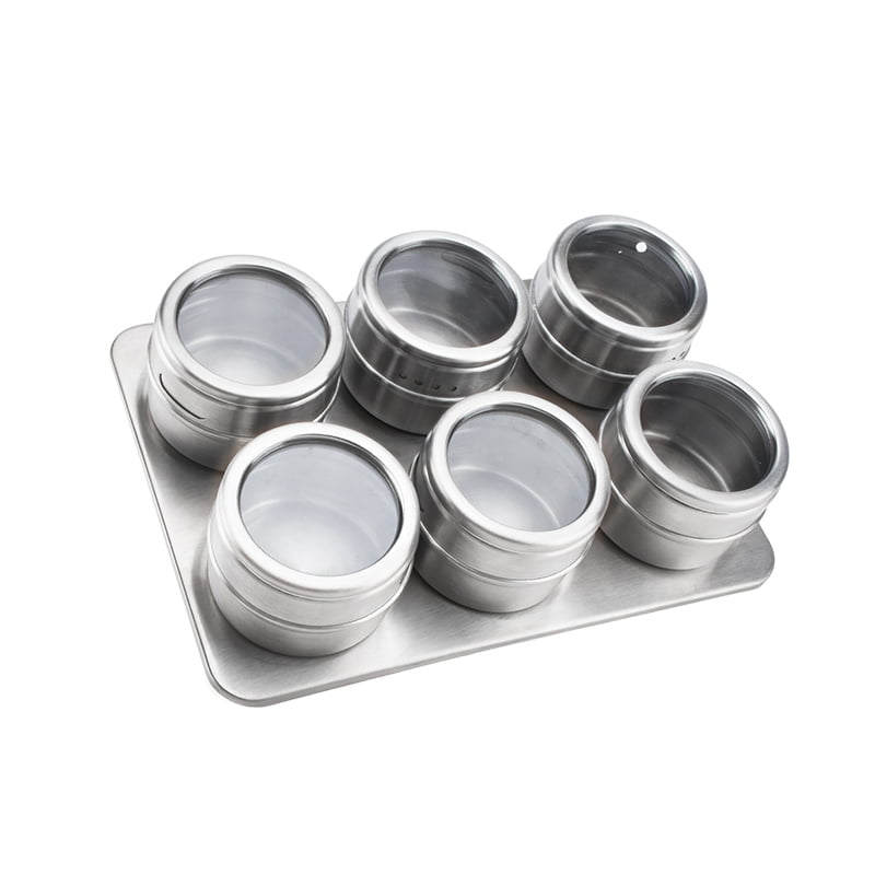 Stainless Steel Magnetic Spice set With 6 Jars Round Storage Spice Rack S6806