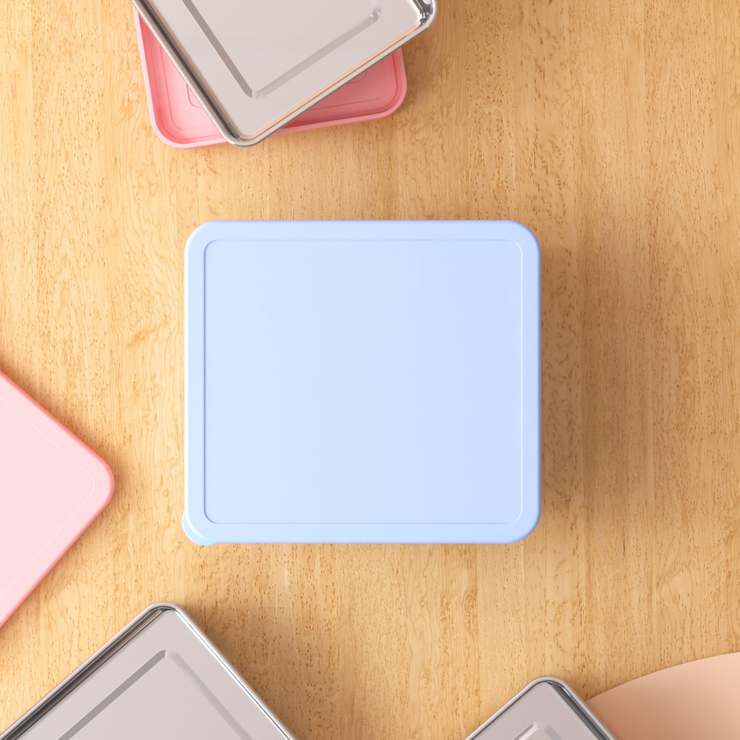 Each metal lunch box is color-coded in cute pastel colors to make them easily identifiable.