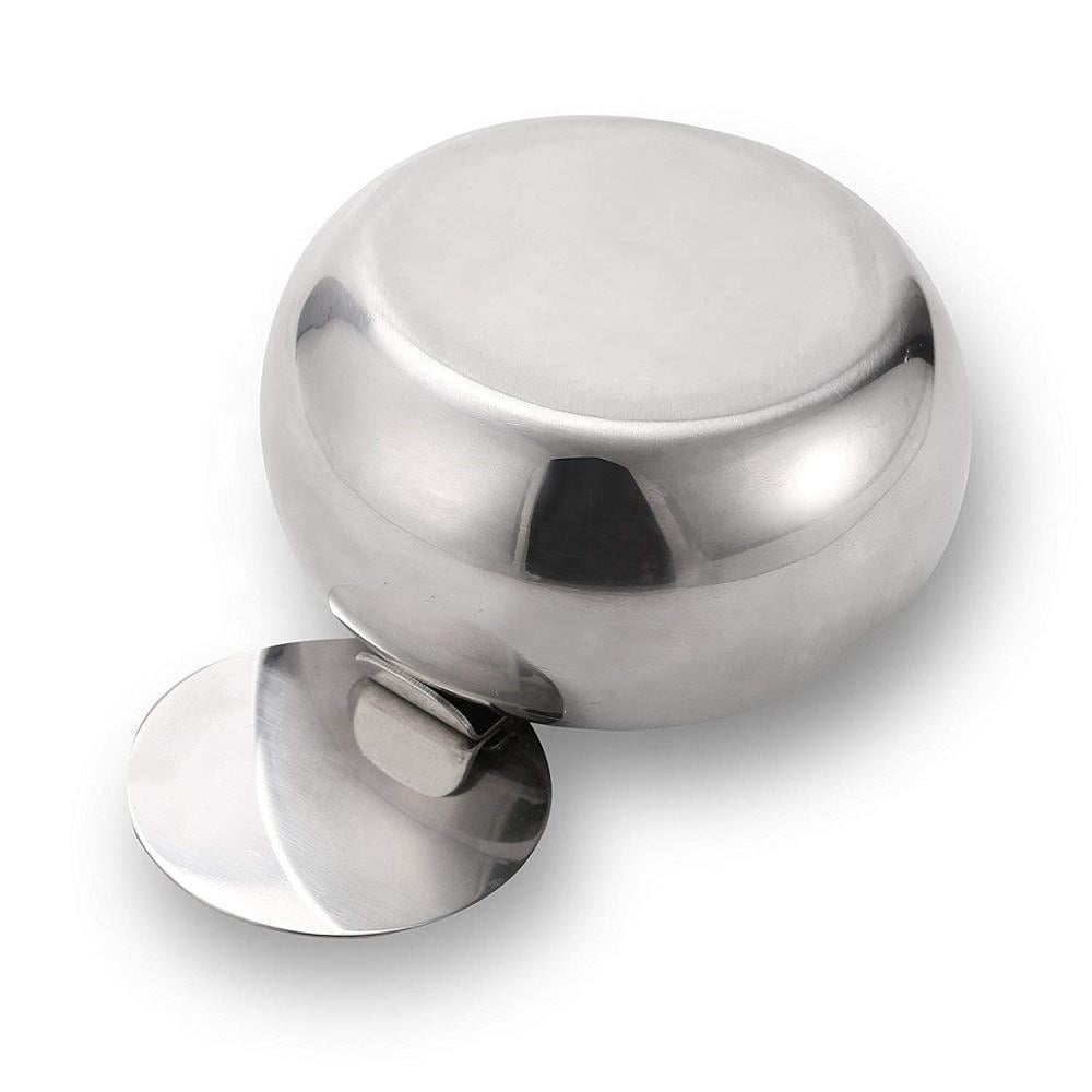 The stainless steel ashtray with a lid can keeps rain out,keeps the ashes and butts hidden. It isn’t messy,clean and sleek! No ashes blowing all over the place.